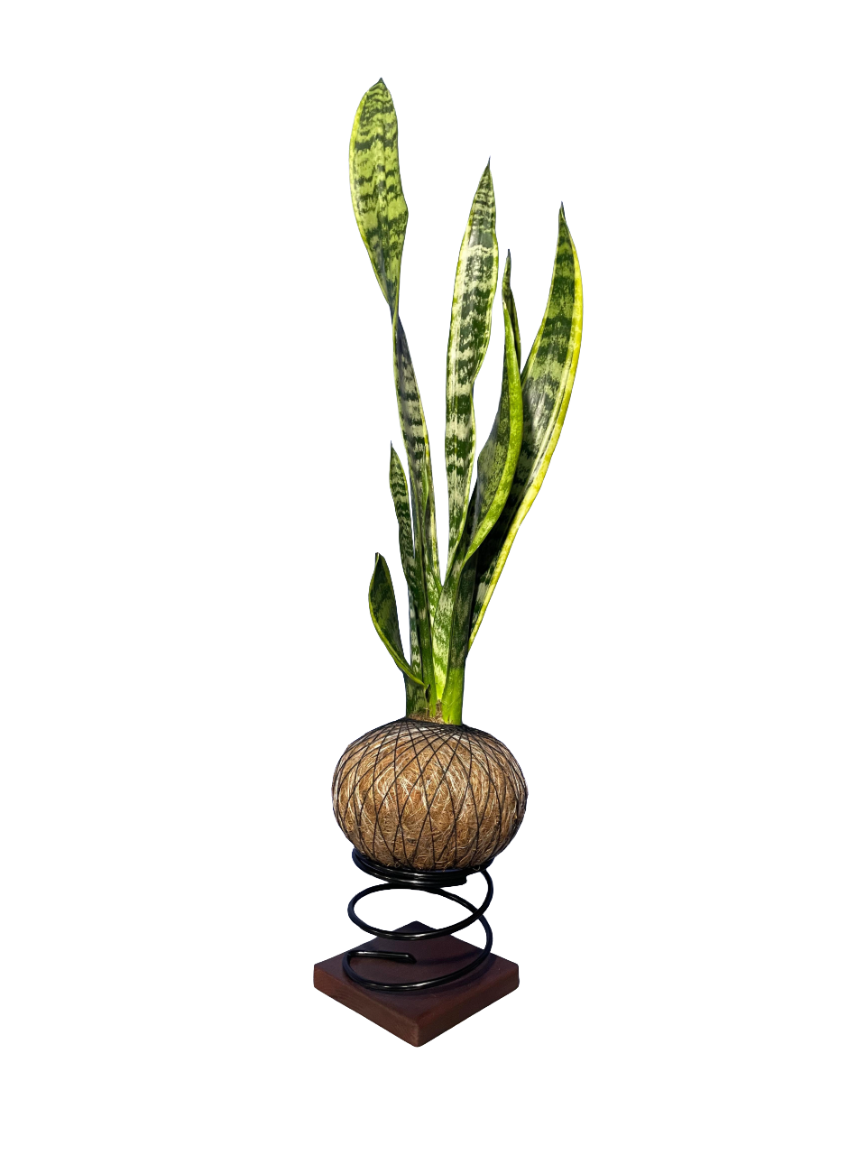 Un toque de calidez y diseño natural. Nuestra base de madera de pino, con su original forma de tornillo, aporta un estilo orgánico y minimalista que contrasta hermosamente con el verde de tu Kokedama. Ideal para mesas de centro, escritorios y repisas.