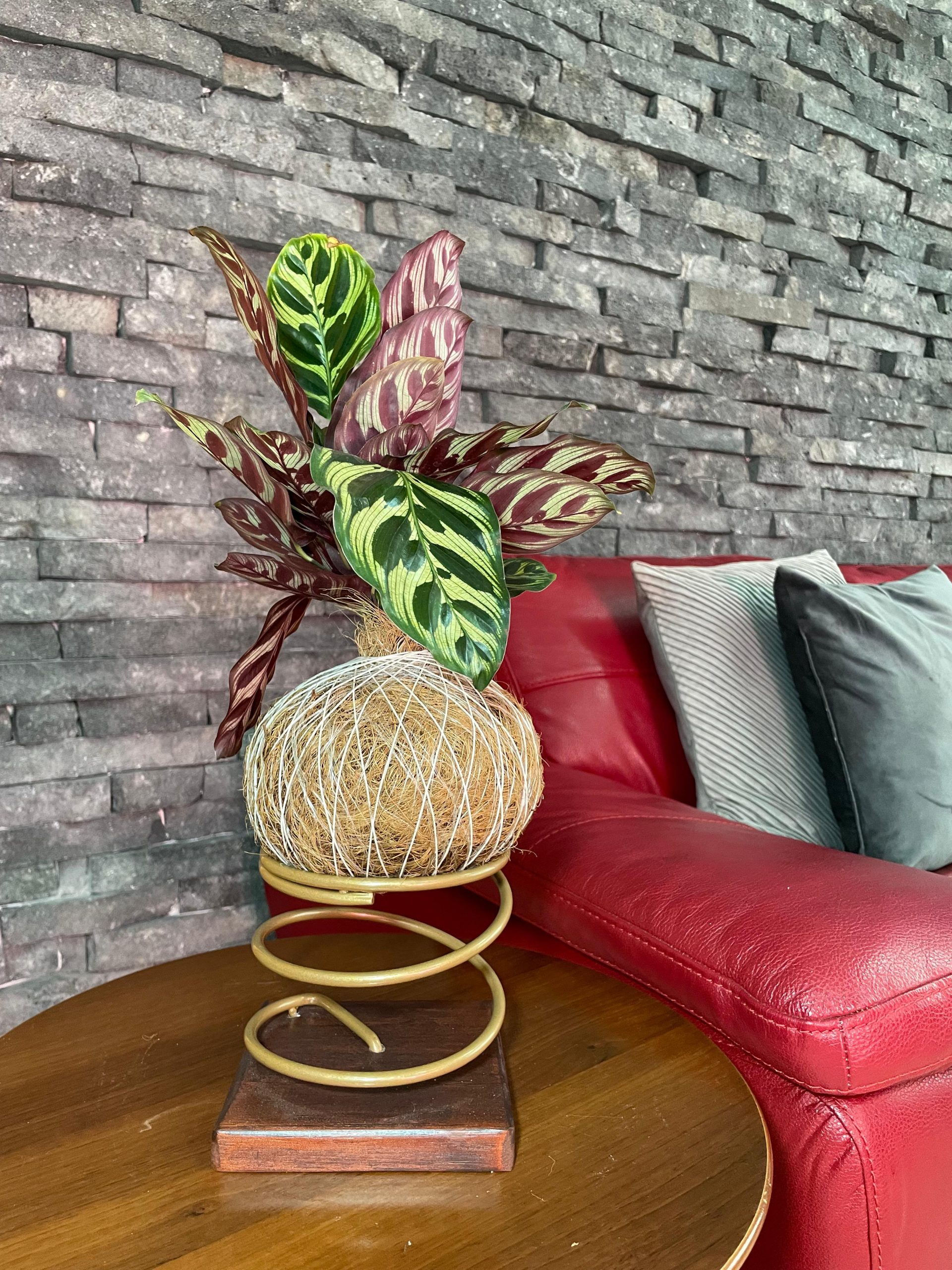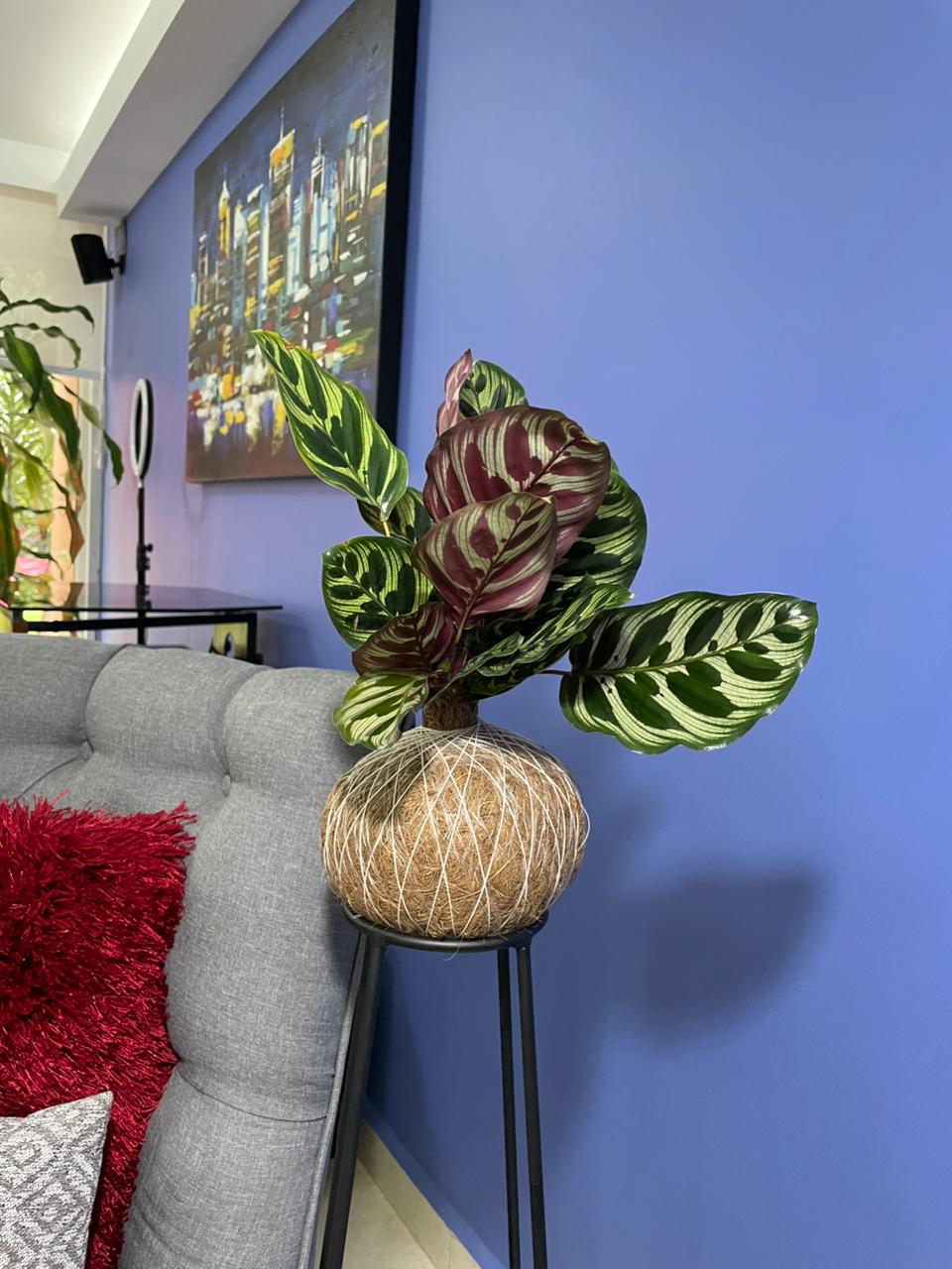 Conocida como la «Planta pavo real», la Makoyana es un espectáculo de la naturaleza. Sus hojas ovaladas parecen un lienzo delicadamente pintado con patrones que recuerdan a las plumas de esta ave majestuosa. Es una Kokedama que se mueve contigo, cerrando sus hojas por la noche y desplegándolas cada mañana en un ritual de belleza diario.