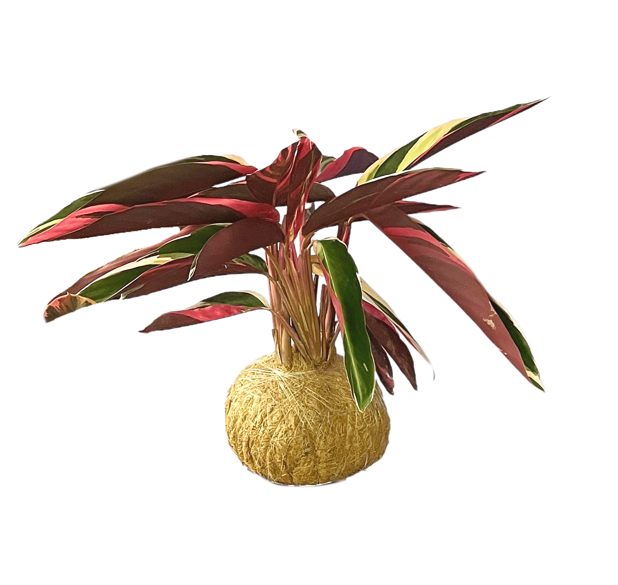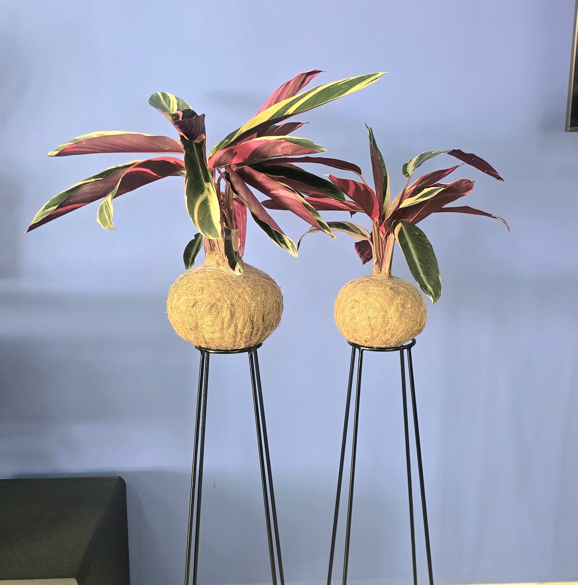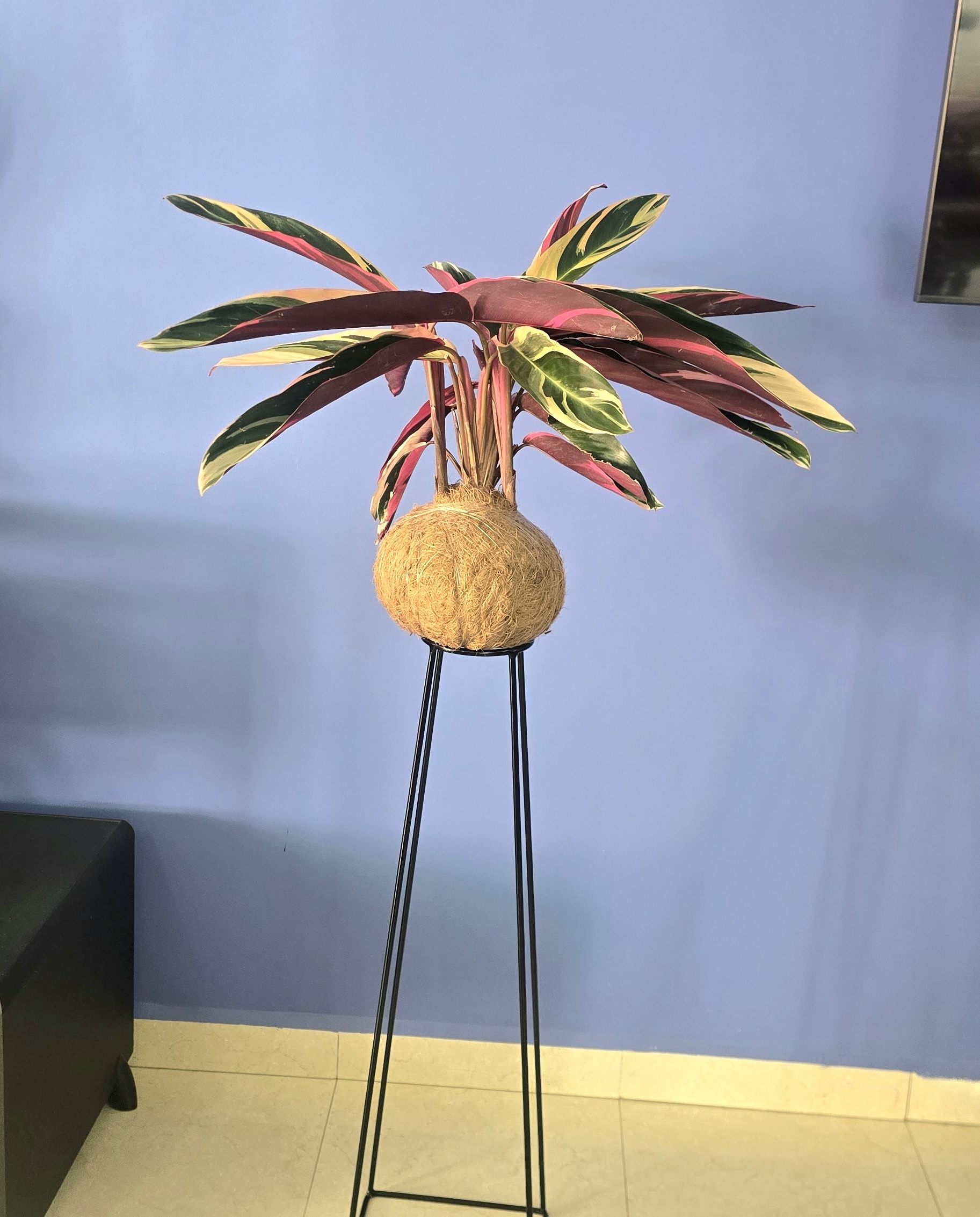 La Pluma de Indio es una explosión de color y energía. Sus hojas lanceoladas, en audaces tonos que van del fucsia al rojo profundo, parecen llamas danzantes que capturan la luz. Es una Kokedama grande que no pasa desapercibida.