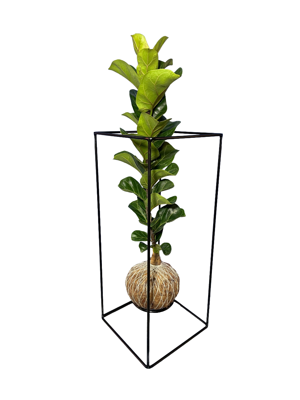 Diseño contemporáneo para tus Kokedamas. Este pedestal de base rectangular y líneas puras es ideal para espacios modernos. Su forma le da un aire de galería de arte, enmarcando tu Kokedama y convirtiéndola en el centro de todas las miradas.